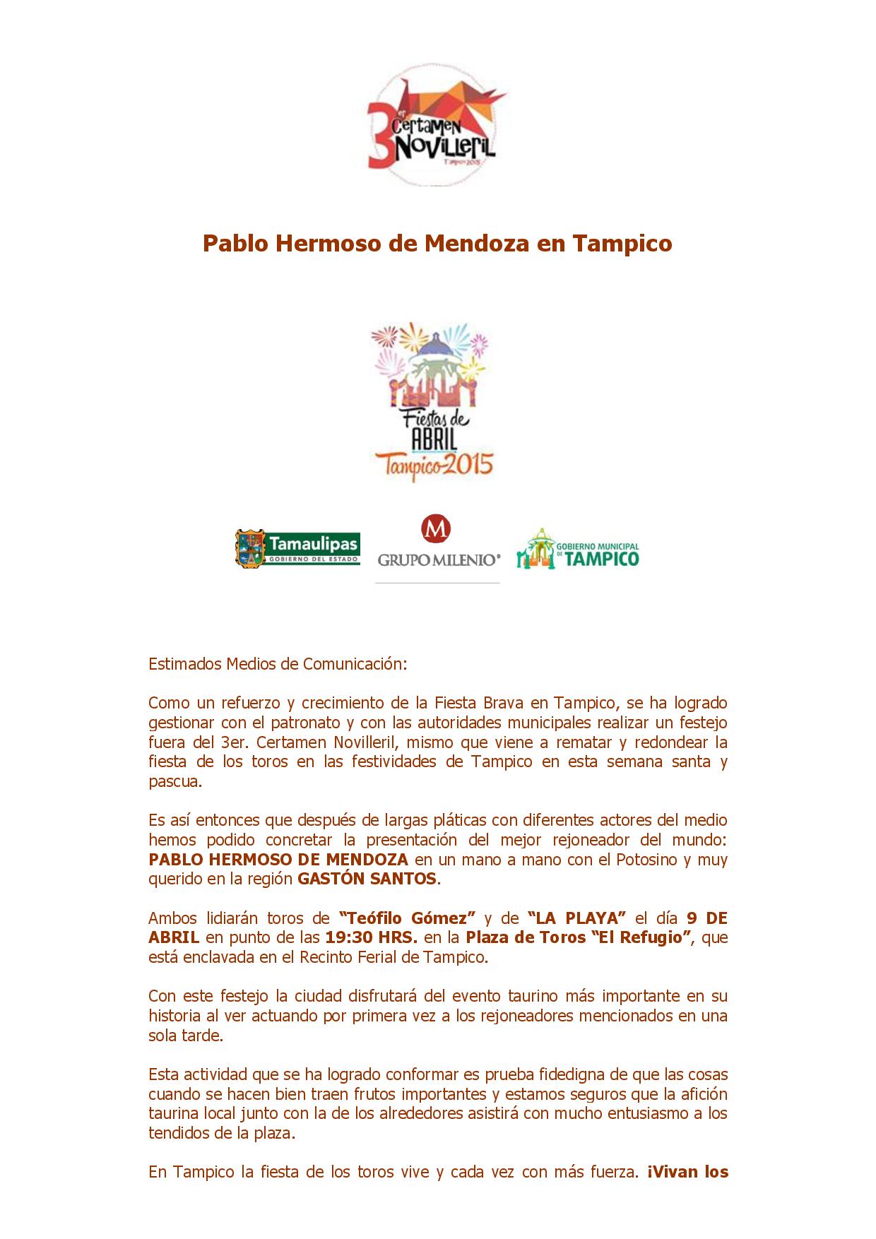 Pablo Hermoso de Mendoza en Tampico