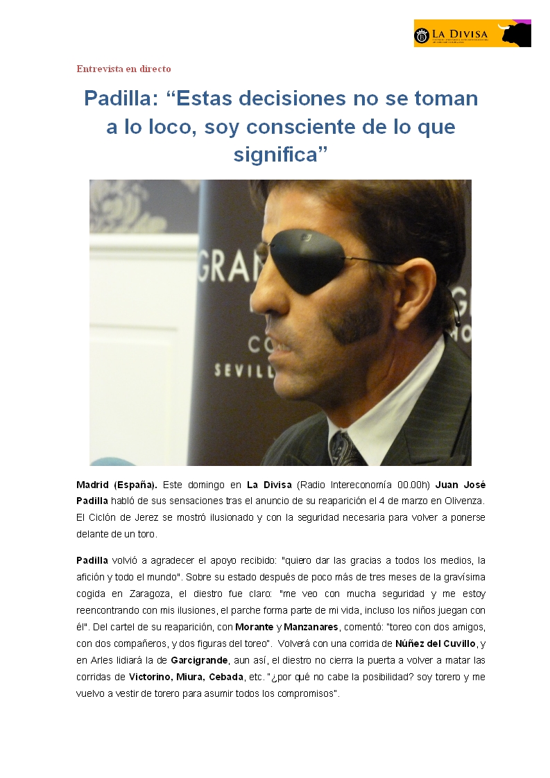 Padilla: Estas decisiones no se toman a lo loco, soy consciente de lo que significa