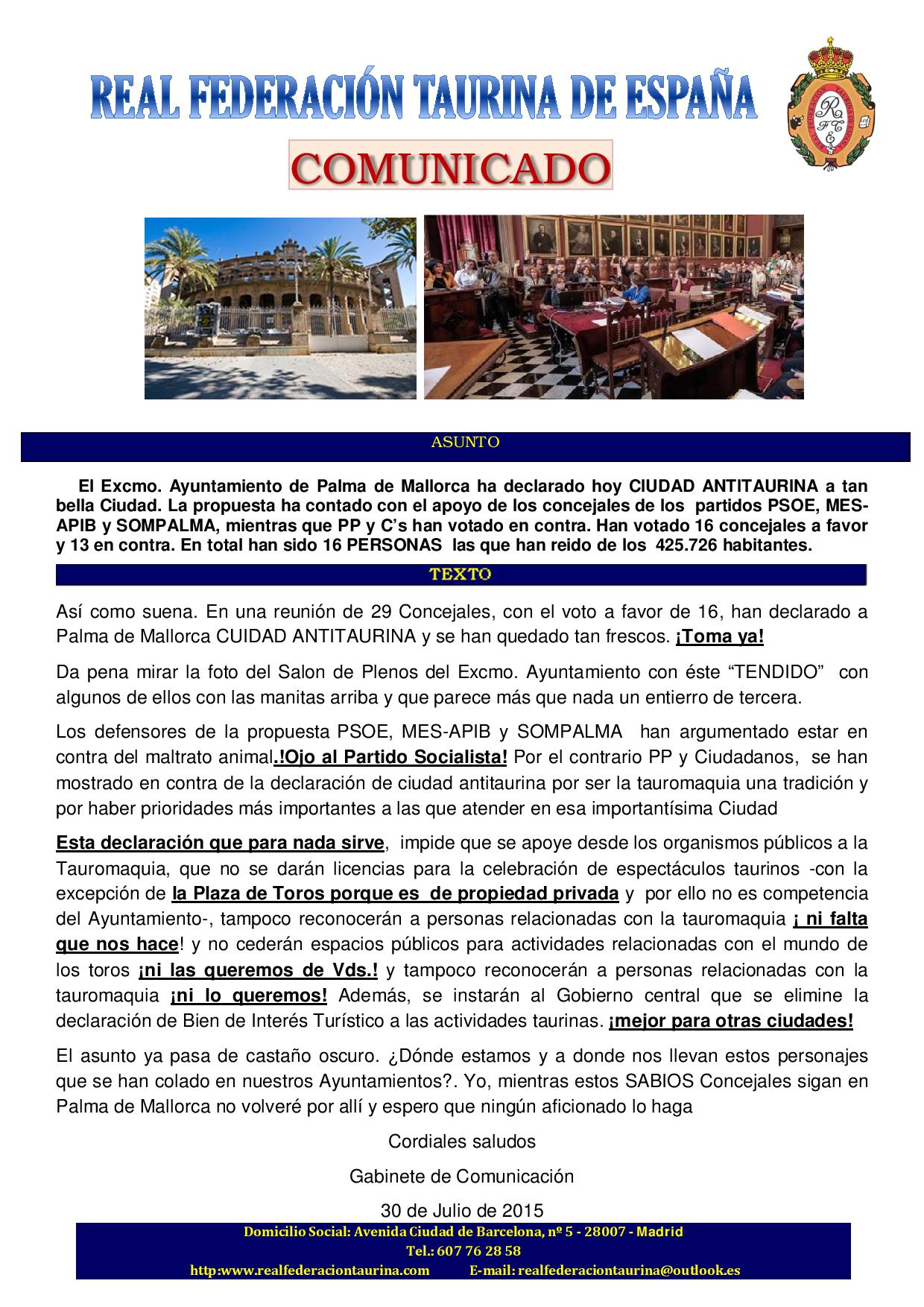 Palma de Mallorca declarada ciudad antitaurina