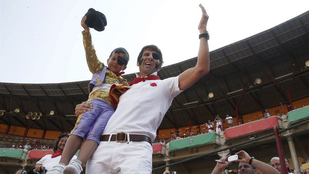 Los encargados de lidiarlos fueron el novillero navarro Javier Marín, el torero retirado Sergio Sánchez, el aficionado práctico Ángel Moreno Pérez-Tabernero y también el diestro homenajeado, que pasó de muleta al último de los astados, con la ayuda de varios de los dobladores del encierro.