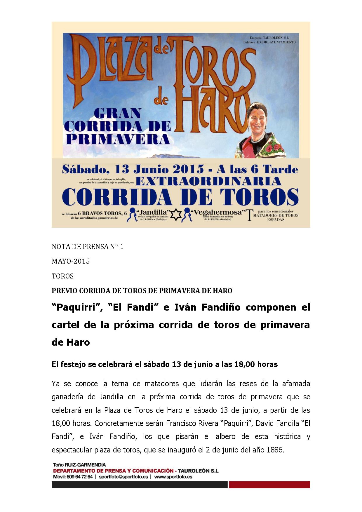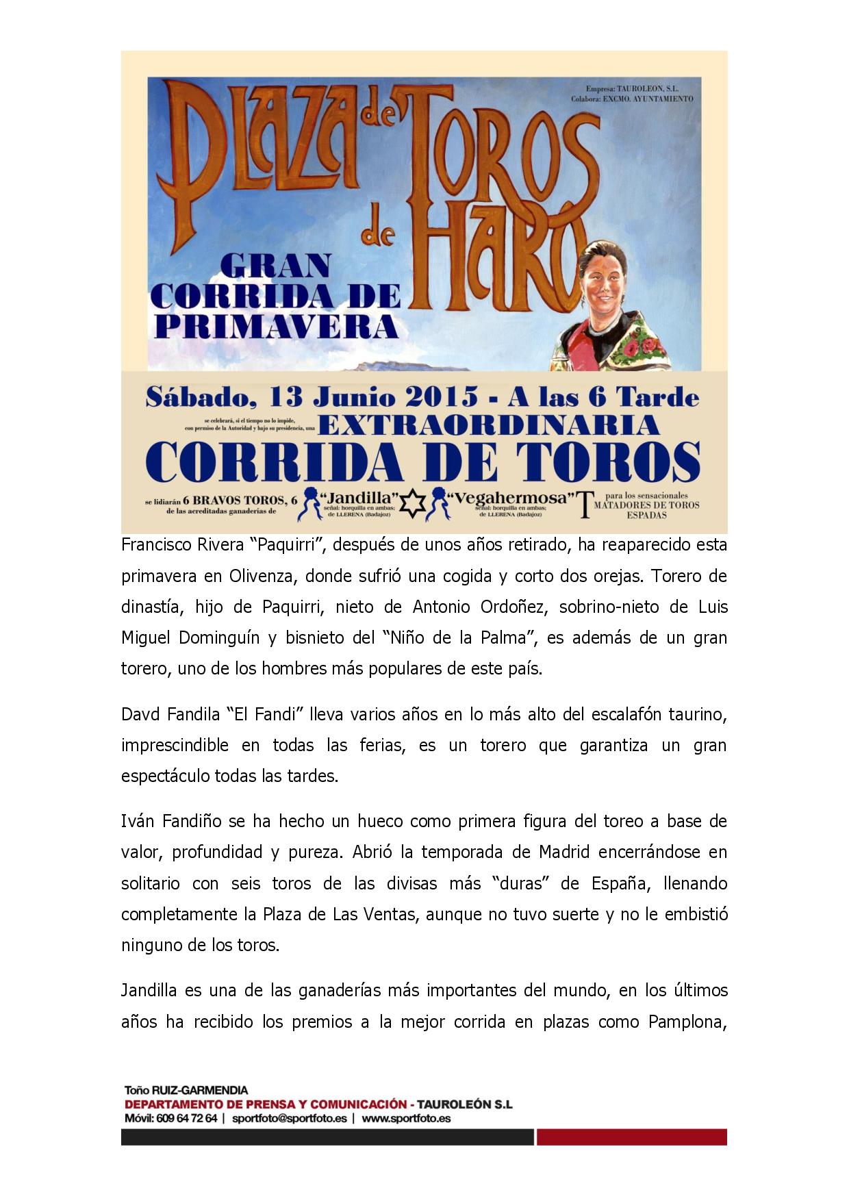 `Paquirri´, `El Fandi´ e Iván Fandiño componen el cartel de la próxima corrida de toros de primavera de Haro