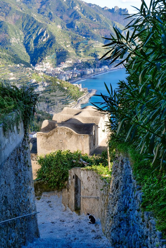 Y como en todas las ciudades y pueblos de la Costa Amalfitana, lo imprescindible es pasear por sus callejas que se estrechan hasta tocarse, disfrutar el bullicio en las terrazas, ver la ropa que cuelga de las ventanas, dejarse tentar por sus heladerías de mil sabores, tiendas de limoncello (que ahora también se hace de mandarina, naranja, melocotón, pomelo… y hasta de chocolate) con todo el sabor del sur italiano y atrapar un sol que parece desplomarse desde un cielo inmensamente azul. Y para hacer un descanso, elegir alguna de las muchas trattorias de la Via Lorenzo y descubrir los platos estrella de la ciudad: los scialatielli (un tipo de pasta parecido a los espaguetis pero más anchos y cortos) con marisco, o los tagliolini al limone amalfitano (otro tipo de pasta con salsa de limón).