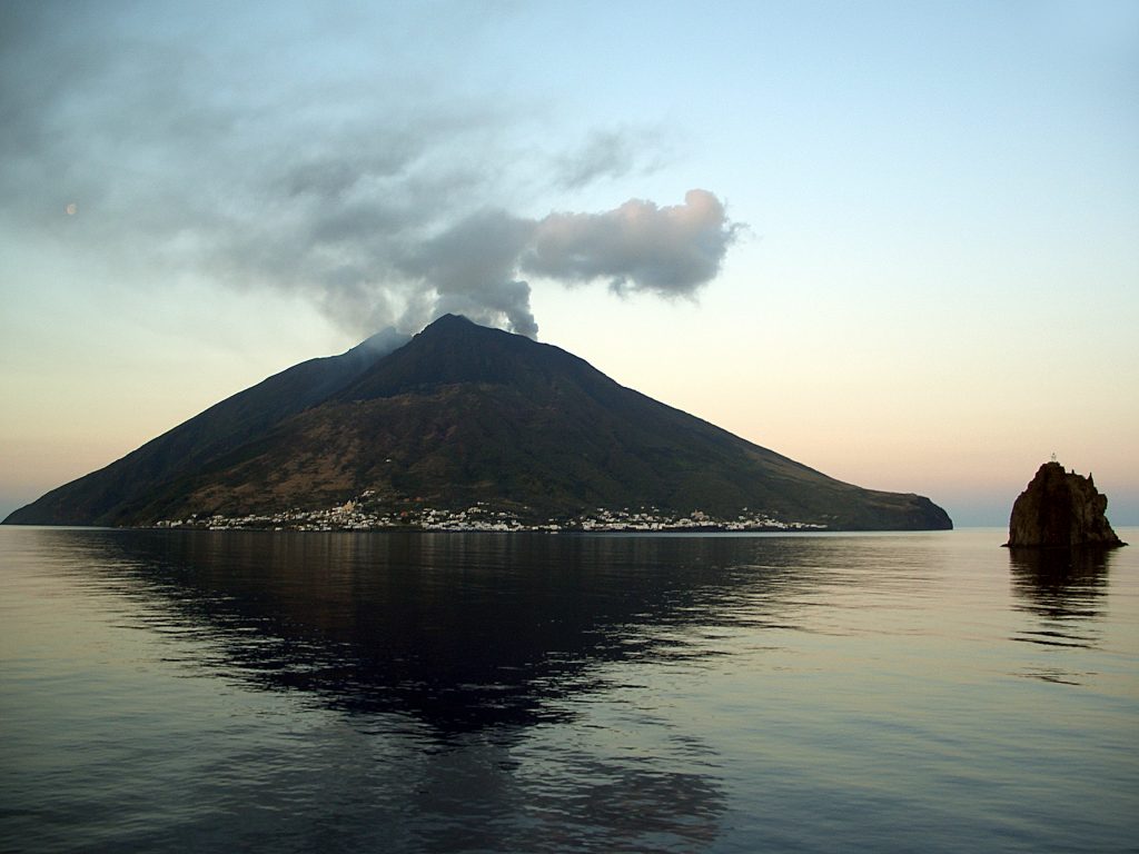 Aunque a veces hay erupciones intensas (la última alarma fue en julio de 2024), por lo general sus llamaradas solo producen cenizas que cubren las mesas de las terrazas mientras los pocos turistas que se acercan continúan bebiendo. Muy cerca está una pequeña isla, Strombolicchio, que una antigua leyenda dice que es el tapón del Stromboli lanzado al mar, mientras que los geólogos lo consideran parte de la chimenea de un volcán, destrozada por el embate de las olas y del viento. Es un farallón vertical rematado por un pequeño faro blanco, ya sin farero, al que se accede subiendo 200 escalones. Julio Verne se inspiró en él para su inmortal obra “Viaje al centro de la Tierra”, en la que los protagonistas son expulsados con su balsa desde las entrañas de la tierra saliendo por la abertura del Stromboli tras la aventura que iniciaran en Islandia.