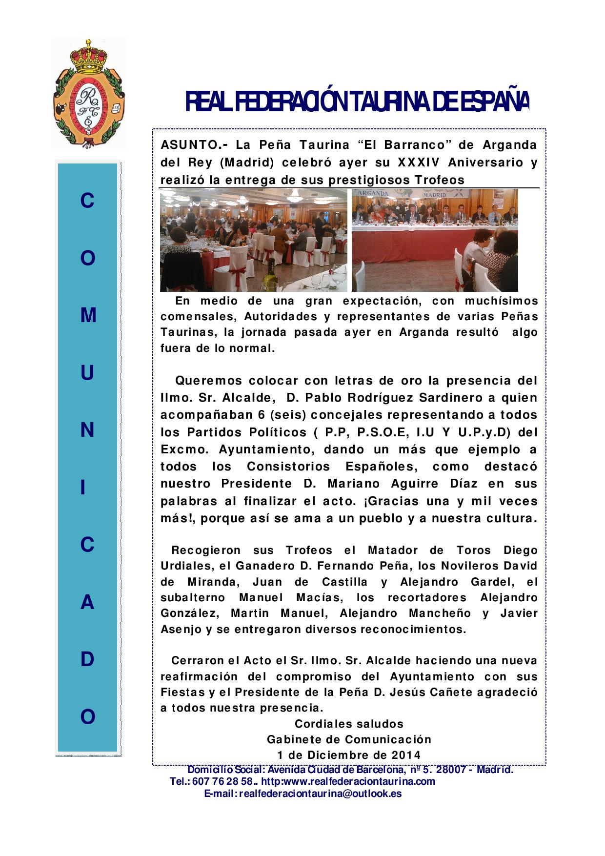 Peña Taurina `El Barranco´ celebró su XXXIV Aniversario y realizó la entrega de sus prestigiosos Trofeos
