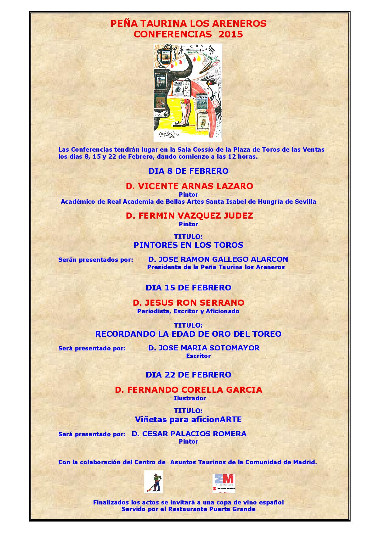 Peña Taurina Los Areneros. Conferencias 2015