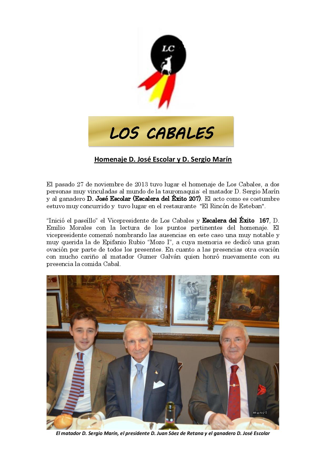 Peña taurina Los Cabales rinde homenaje a José Escolar (Escalera del Éxito 212) y Sergio Marín
