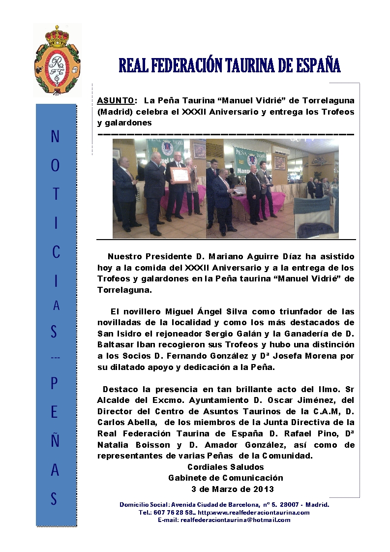 Peña Taurina Manuel Vidrié celebra sus XXII Aniversario