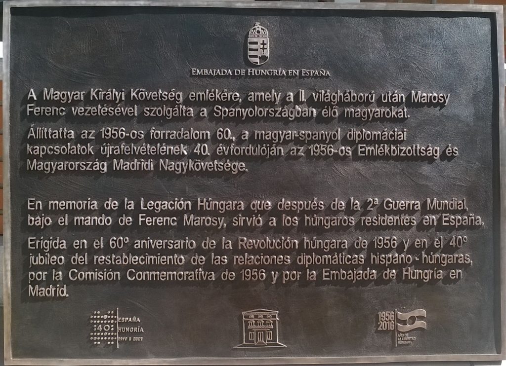 El signo conmemora la labor del Embajador Ferenc Marosy, quien después de la Segunda Guerra Mundial ayudo a los húngaros en España.