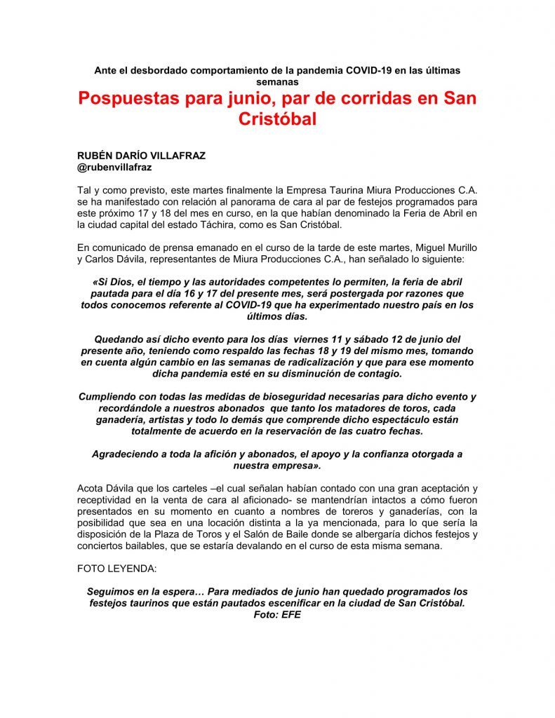 Pospuestas para junio, par de corridas en San Cristóbal – Para + info haz clic👆 🇪🇸