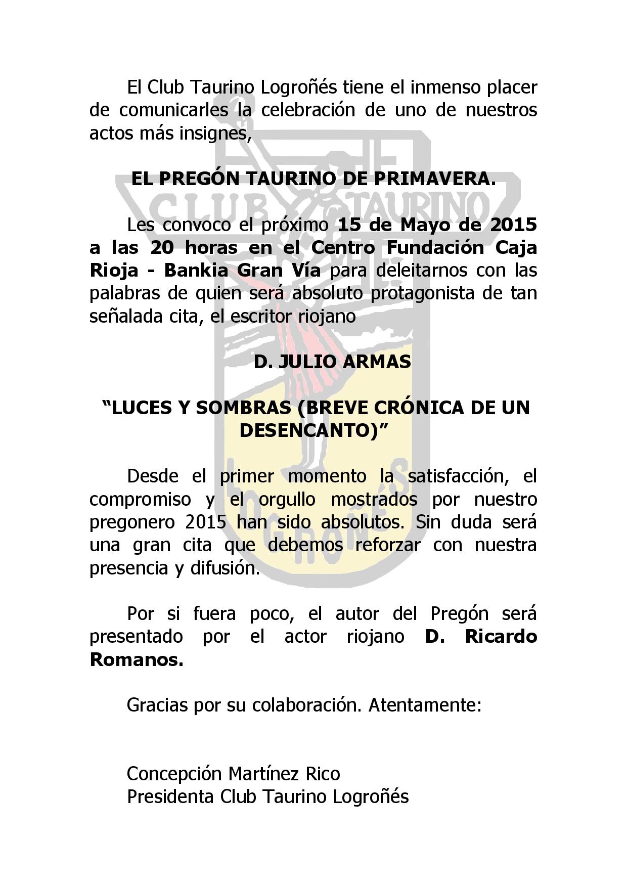 Pregón Taurino de Primavera en el Club Taurino Logroñés