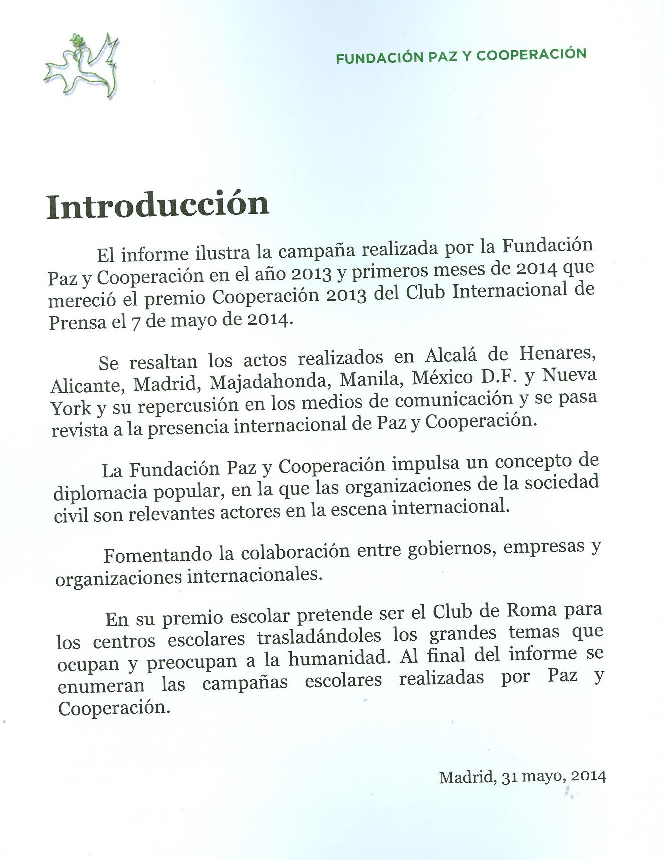 Premio Cooperación 2013