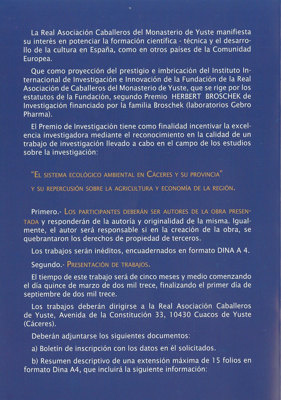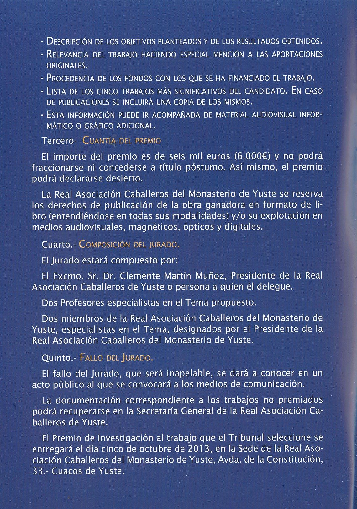 Premios de Investigación. Fundación Caballeros de Yuste