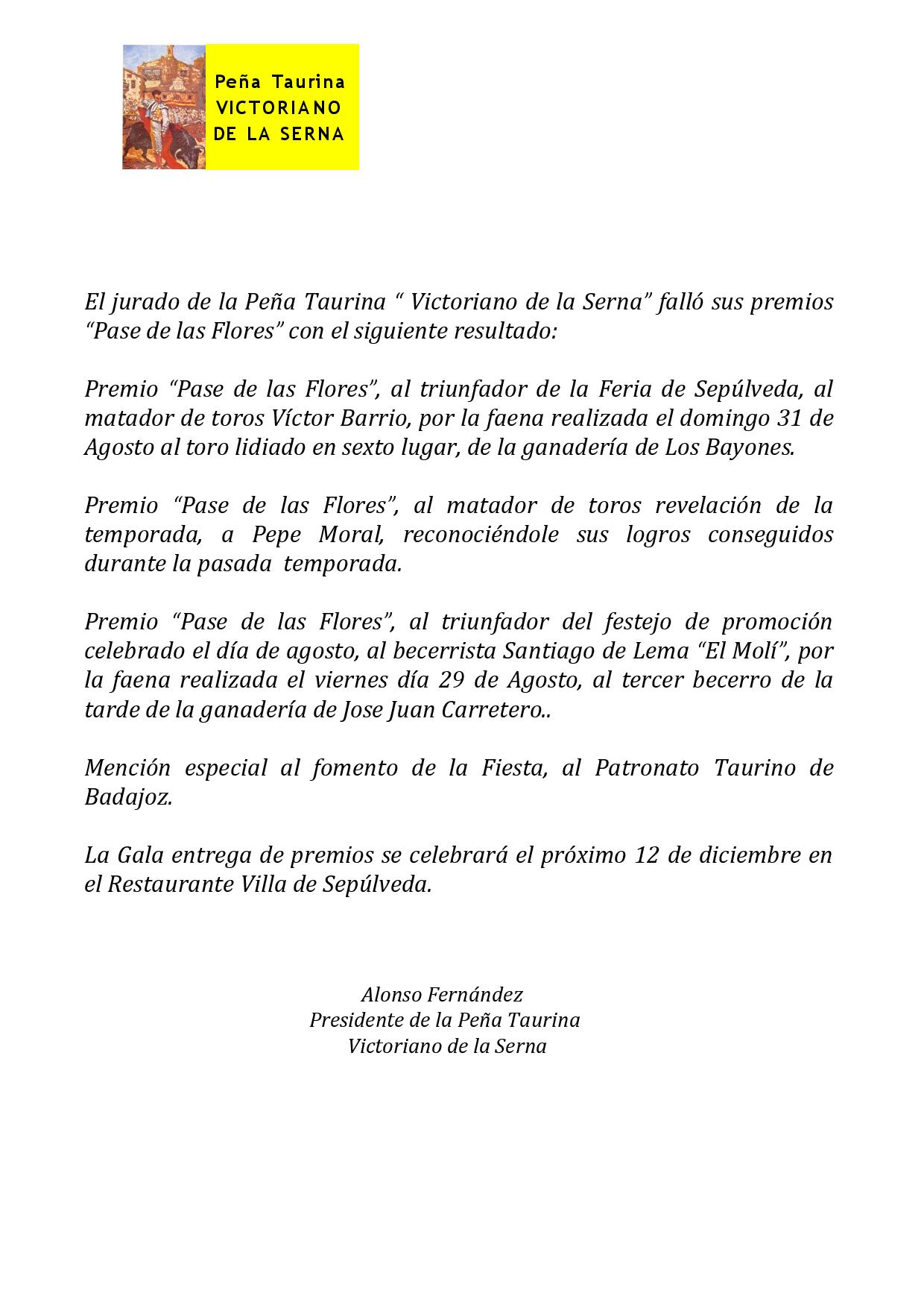 Premios Pase de las Flores de Victoriano de la Serna