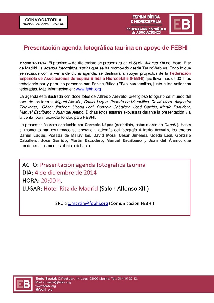 Presentación agenda fotográfica taurina en apoyo de FEBHI