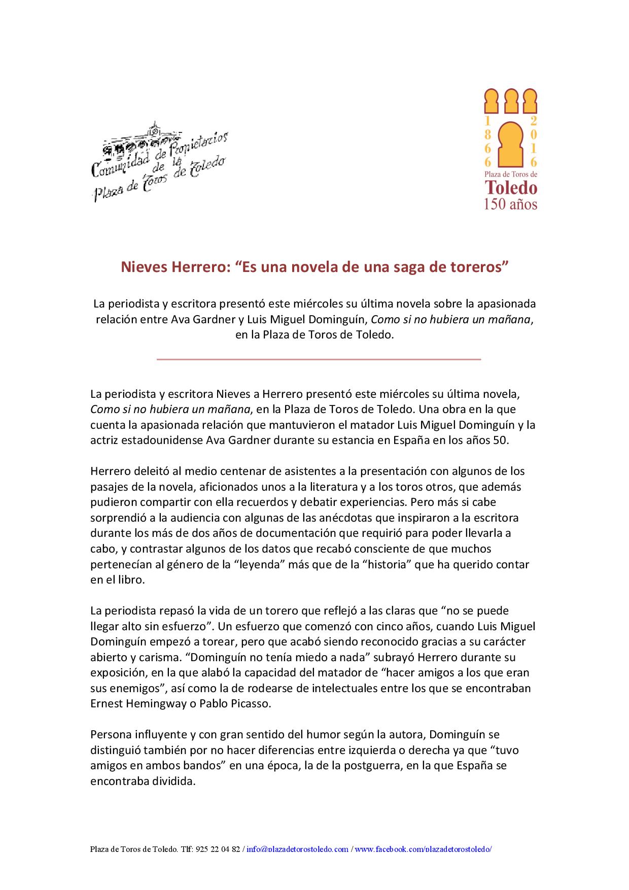 Presentación de la novela de la periodista y escritora Nieves Herrero