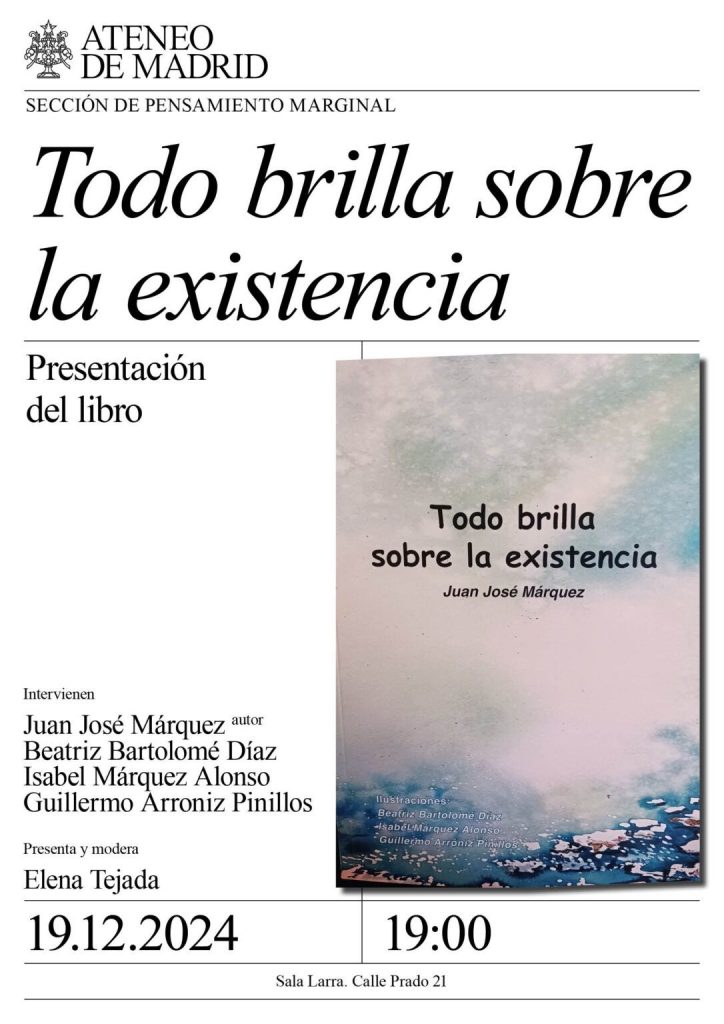 El Dr. Juan José Márquez, Escalera del Éxito 224, presentó su último libro junto a los ilustradores «Todo brilla sobre la existencia» en El Ateneo de Madrid, el pasado 19 de diciembre con una gran afluencia de público.