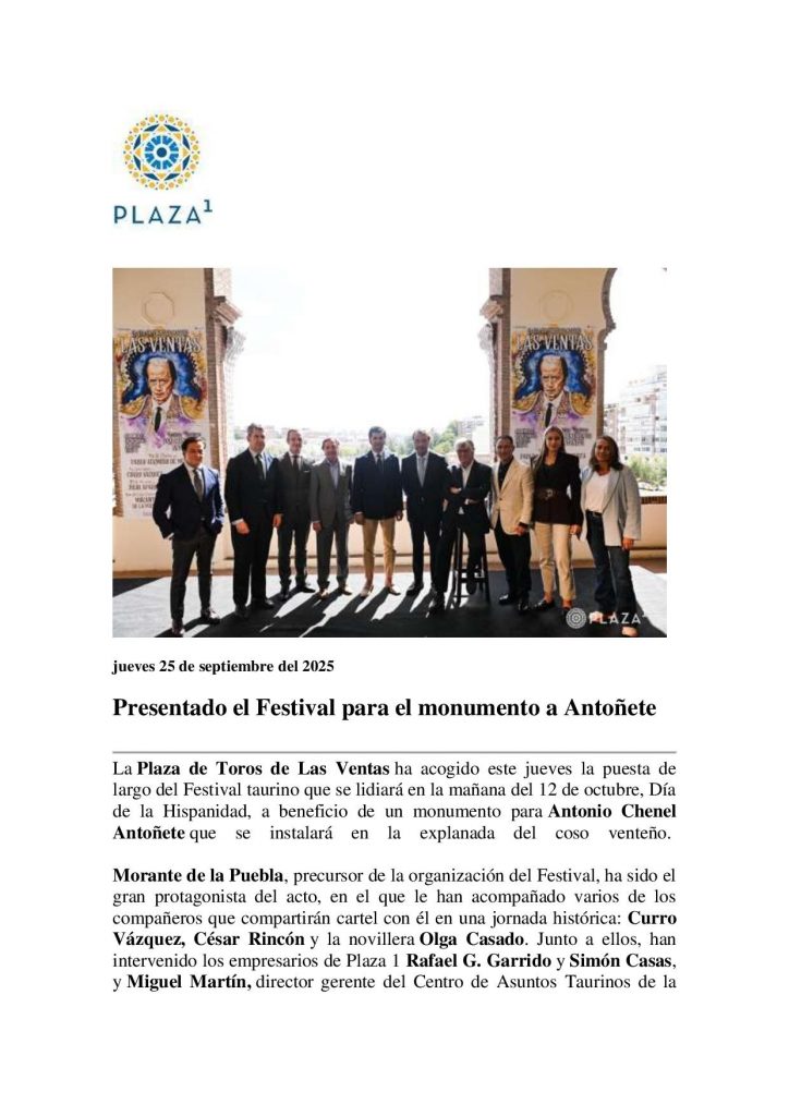 Presentado el Festival para el monumento a Antoñete – Para + info haz clic👆 🇪🇸