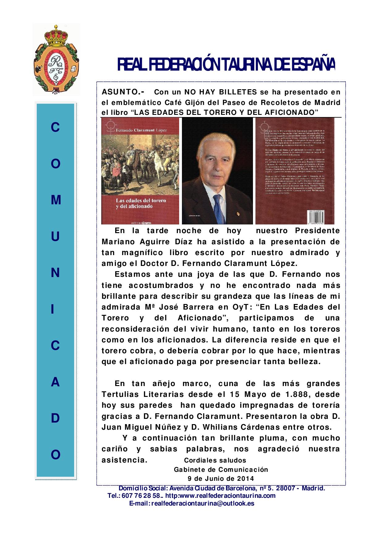 Presentado el libro Las Edades del Torero y del Aficionado del Dr. Fernando Claramunt. Escalera del Éxito 190