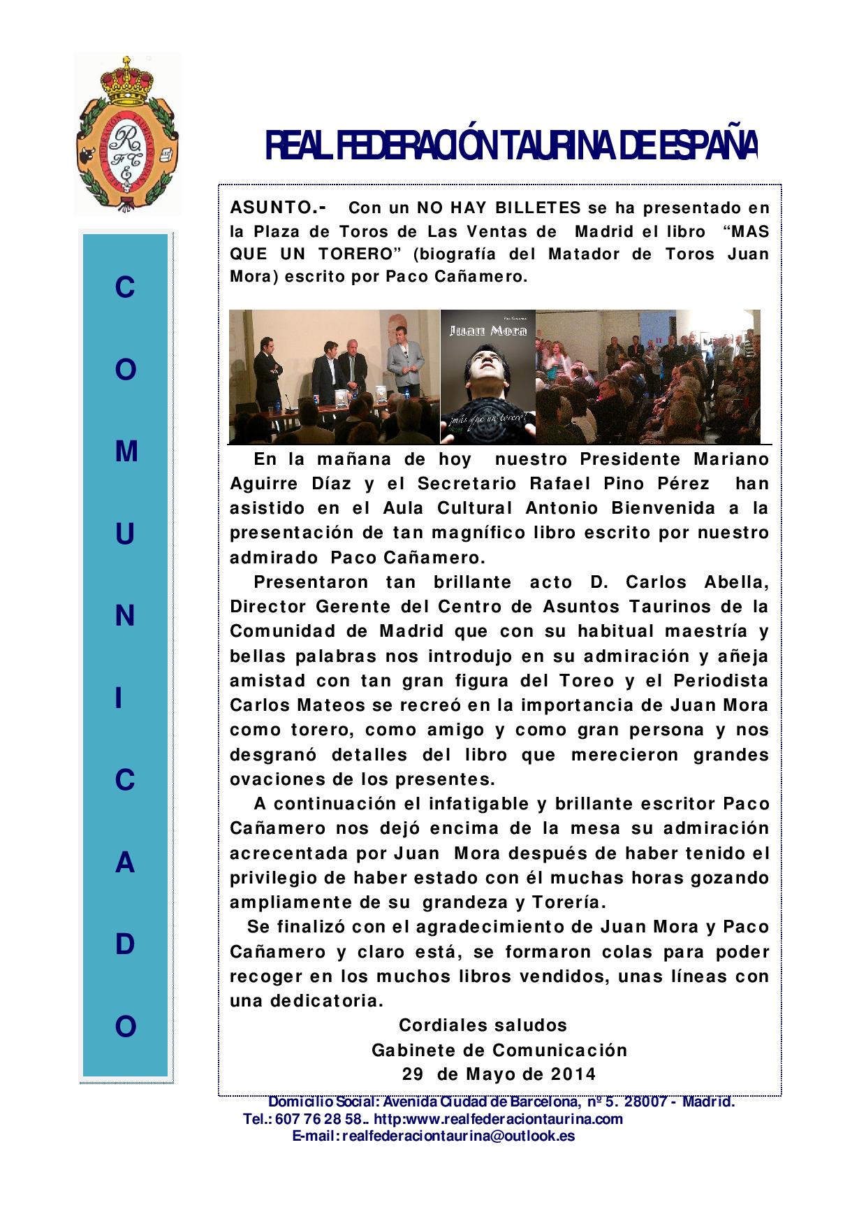 Presentado en la Plaza de Toros de Las Ventas de Madrid el libro MAS QUE UN TORERO , biografía del Matador de Toros Juan Mora