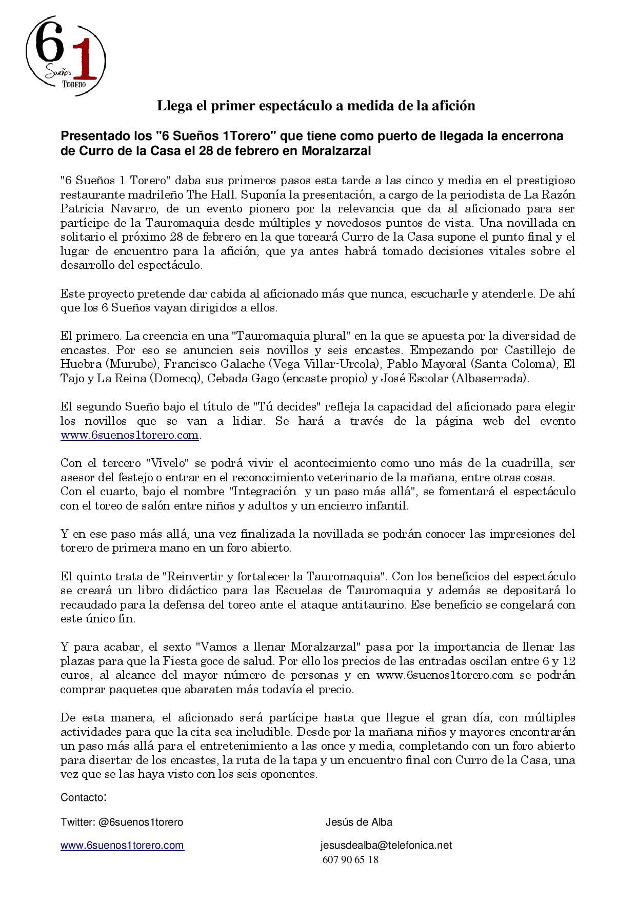 Presentado los `6 Sueños 1 Torero´