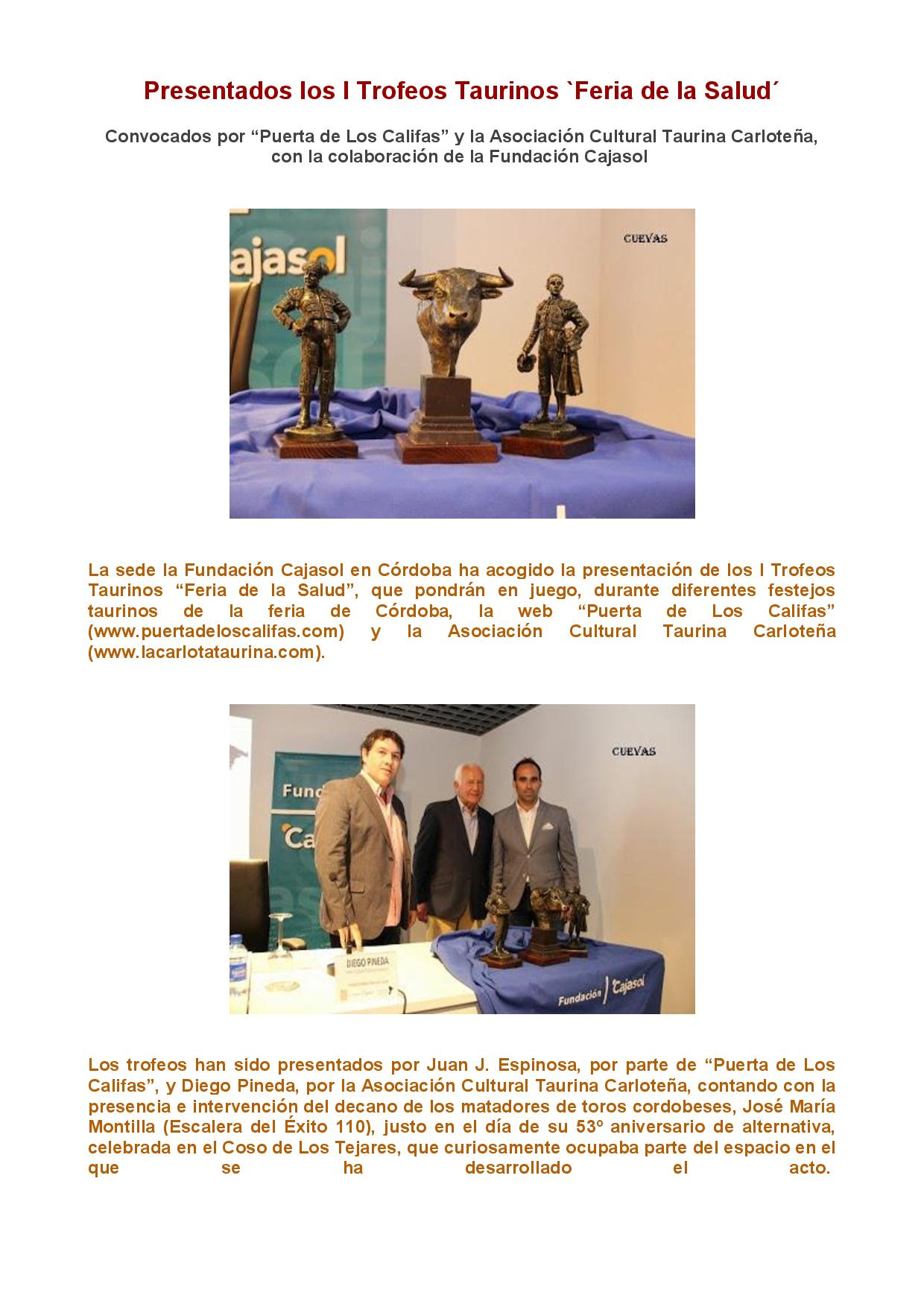 Presentados los I Trofeos Taurinos `Feria de la Salud´