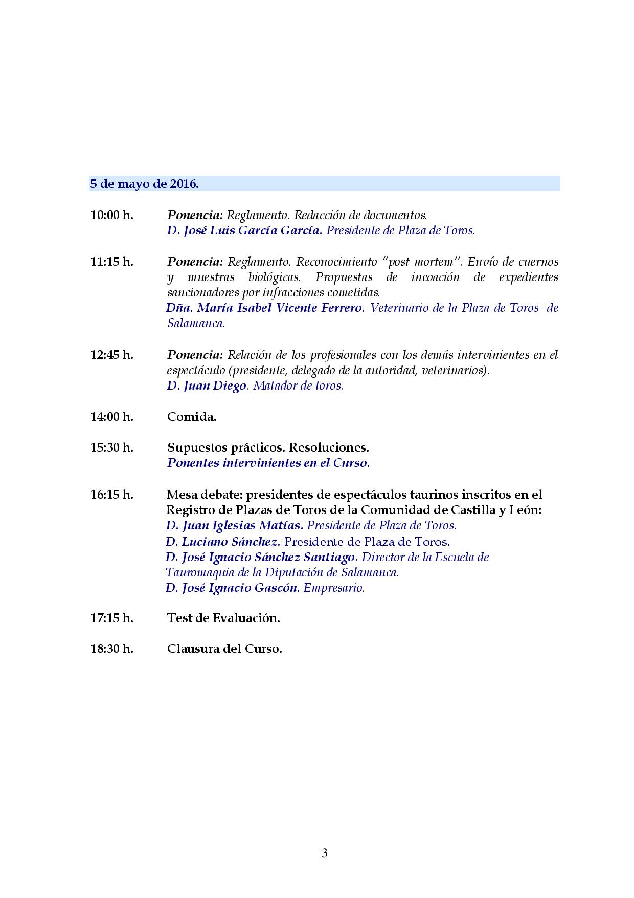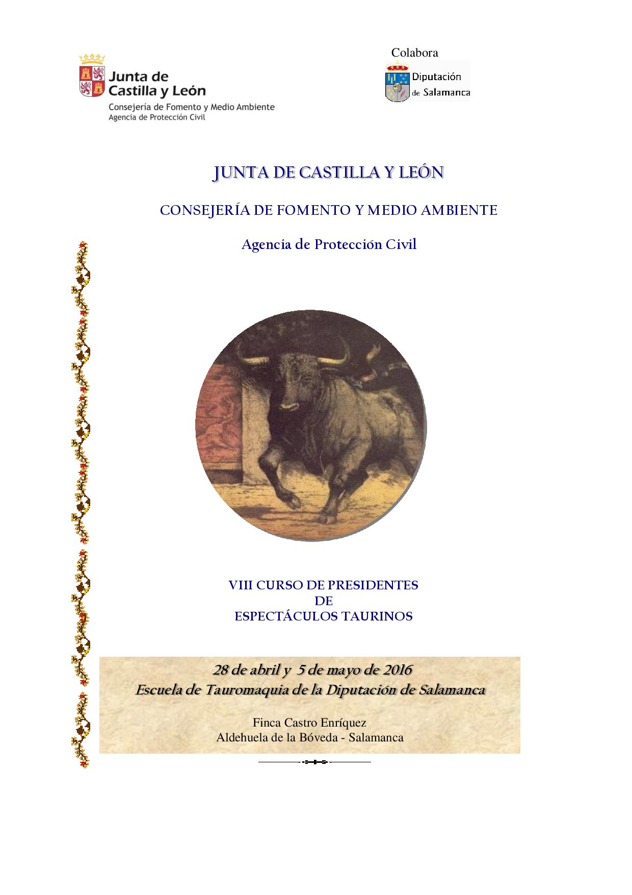 Programa del VIII Curso de Formación de Presidentes de Espectáculos Taurinos