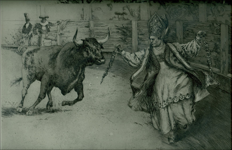 La burda ejecución del espectáculo, su grosera puesta en escena y los peligros a los que se sometía a intervinientes y espectadores, consiguieron desprestigiar su corrida, y tras una desgraciada tarde en la que se produjeron varias muertes entre los asistentes, los responsables del Vaticano recomendaron al Papa la abolición de la corrida, lo que se logró merced a la promulgación de la bula, “De Salute Gregis”, que publicó San Pío V en Italia en 1567, y a la vez envió a Felipe II para que se prohibieran las corridas de toros en España. Anteriormente hubo una serie de conatos de prohibición de las corridas en España, que fueron abortados gracias a la lúcida y tenaz defensa que de ellas hizo el Dr. D. Juan de Medina, quién detentó el estandarte de apología de la Fiesta, que luego fue apoyado por moralista y consejeros reales que ilustraron al Rey sobre la conveniencia de mantenerla. Felipe II hizo uso de su derecho a la retención de bulas, convencido de que su publicación inferiría un gran perjuicio al pueblo, muy aficionado a estos festejos, y solicitó la revisión de la citada bula. En 1573, forzado por sus asesores, publica la prohibición, pero en Portugal solamente. El Papa sigue manteniendo la bula, a pesar del mal que esto suponía para la religión, pues se había perdido el respeto a la excomunión, castigo al que se condenaba a aquel que actuara o asistiera a la corrida. A la muerte de Pío V, le sucede Gregorio XIII, quién a solicitud Real, promulga la bula “Exponis nobis”, el 25 de agosto de 1575, que levantó la prohibición para los seglares, manteniéndola para los clérigos, exigiendo que no se celebraran corridas en días festivos, y aconsejando que se tomaran las mejores medidas para evitar cogidas y muertes. Muchos religiosos españoles seguían asistiendo a los festejos convencidos de que no era pecado, por lo que el Papa Sixto V, encomendó en 1586 al Obispo de Salamanca el seguimiento del cumplimiento de la prohibición, autorizándole para que castigase a los que no la cumplieran. Tras la muerte de Sixto V en 1590, accede al Papado Urbano VII, a quién sucede Gregorio XIV catorce días después (“Felipe II y el tema de los Toros”, José Serrano Carvajal, pág. 11. Madrid, 1999), y tras él, en 1591, ocupa la Silla Papal Inocencio IX, al que sucede Clemente VIII en 1592, quién en 1596, después de deliberaciones con los consejeros reales, promulga la bula “Suscepti Muneris”, en la que levantan todas las prohibiciones relativas a la asistencia a festejos de toros, tanta a seglares como a clérigos, quedando solo vigente para frailes y mendicantes.
