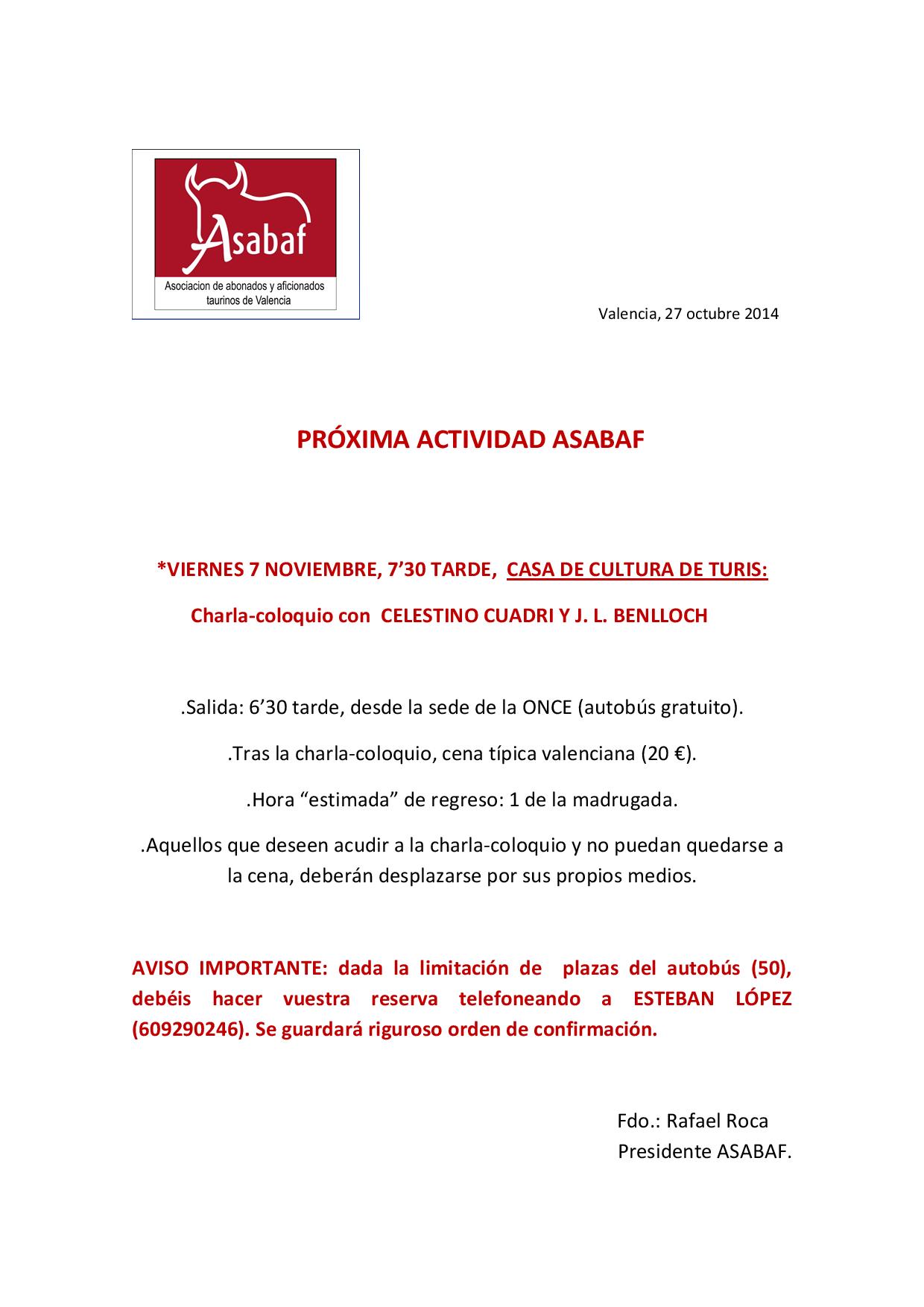 Próxima actividad ASABAF
