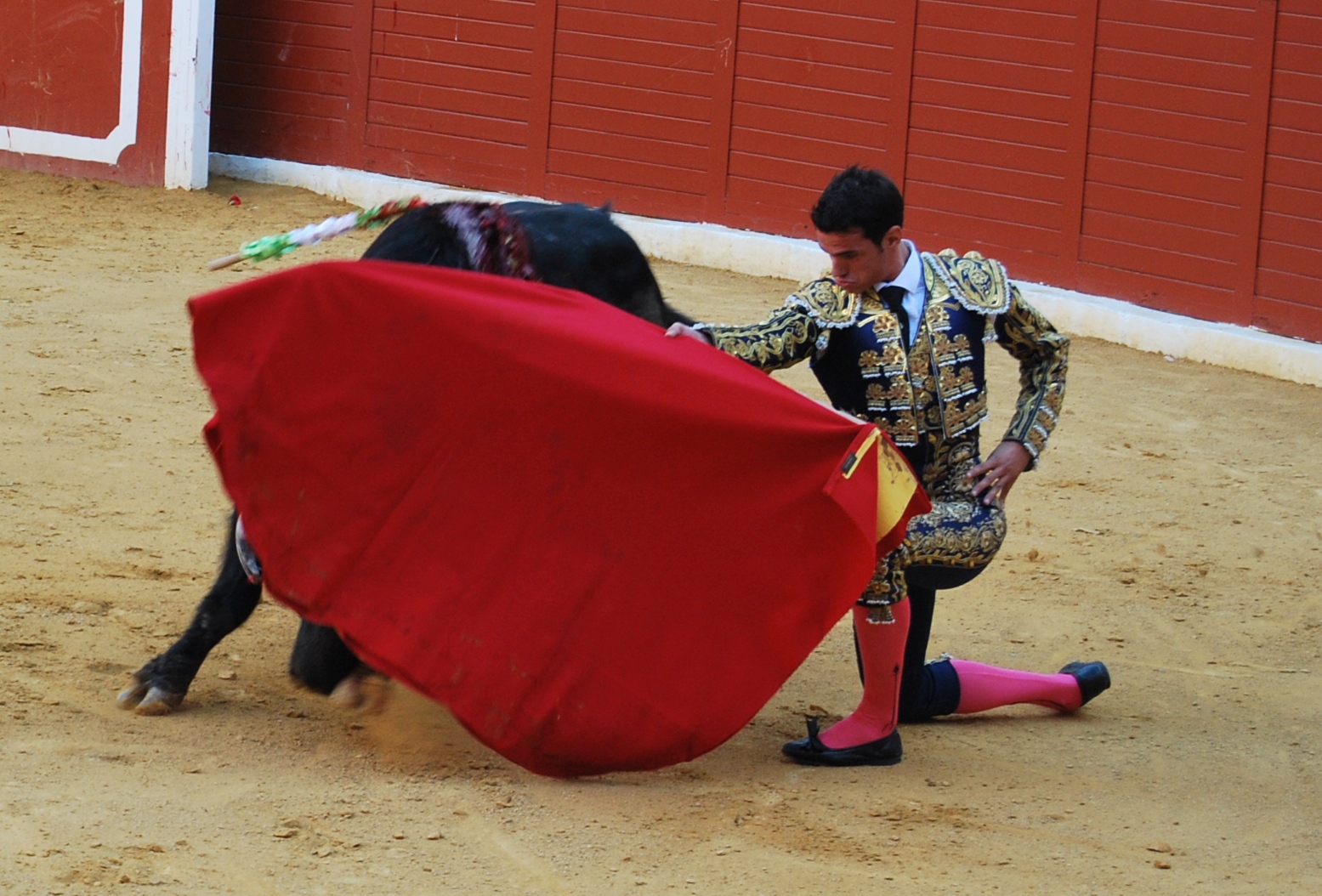 El torero de la tierra se gustó con el capote ante el primero de su lote, un novillo de Lagunajanda que fue aplaudido en el arrastre, tras recibirlo con una larga cambiado. La faena de muleta la inición con pases por bajo con una rodilla en tierra, para llevarse el novillo a los medios en donde consiguió templadas tandas de derechazos y naturales peinando con la muleta el albero. Mató de pinchazo y estocada, y se le concedieron dos orejas.