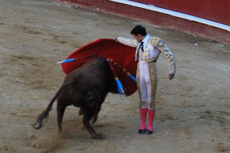 En la faena de la muleta aguantó dos parones del novillo escalofriantes, con el pitón derecho apoyado en el pecho del torero. Mató bien, el novillo se amorcilló y luego tuvo que utilizar en diversas ocasiones el descabello. Toreando le pagaron un aviso, y minutos más tarde el segundo, no obstante la fuerte ovación del público le obligó a saludar desde el tercio.