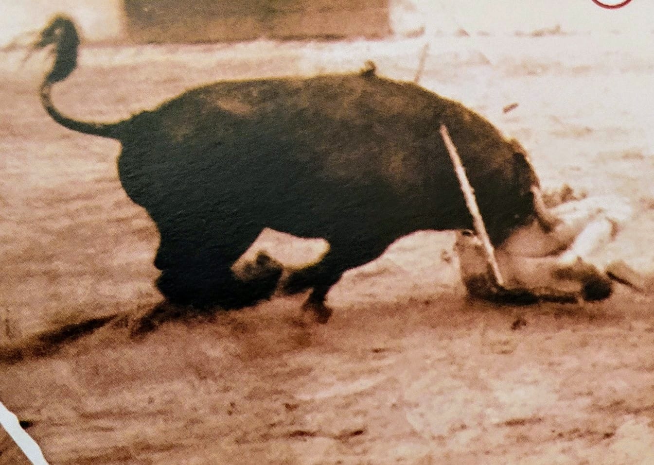 Ahí tenéis una historia curiosa. El toro se llamaba Cubetero porque fue criado con biberones. Mató a un hermano de camada en la ganadería, al caballo del picador; Carbonero de la cuadrilla de Chiquilín, le pegó un cornalón a Chiquilín y al voltearlo le partió el fémur. Luego, a Sanluqueño, después de coger a Chiquilín, le dió tres cornadas. Núñez que tomaba la alternativa, fue a ver a Chiquilín a la enfermería y éste le dijo: no mates a ese toro que te va a coger también, y así lo hizo. Ya en el hospital de Palma de Mallorca, Chiquilín oyó llorar en la habitación de al lado y creyó que era su familia, pero era la familia de Salvador Guardiola, que cayó del caballo y se partió el cráneo. Chiquilín era muy amigo mío en sus últimos años. Ya en sus últimos días, operado de una peritonitis. Estando con él en la habitación, me dijo: Domingo… tápame que tengo frío. A los pocos minutos murió. Era bisnieto de una hermana de Lagartijo el grande, y también llevaba sangre de Manolete. Torero por los cuatro costados.