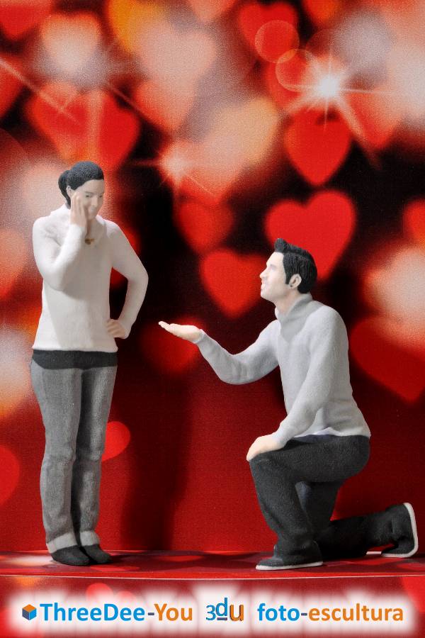 Como siempre en ThreeDee-You Foto-Escultura 3d-u la exposición la constituyen retratos escultóricos, de cuerpo entero y en color, de personas reales que han posado en su moderno estudio 3d. ¿Regalo más romántico que las fotoesculturas? ¡Imposible! Y además, original y personal. Todo lo que podemos esperar de un regalo que será el recuerdo sólido de esa fecha tan entrañable. ¿Qué mejor manera de afirmar nuestro amor?