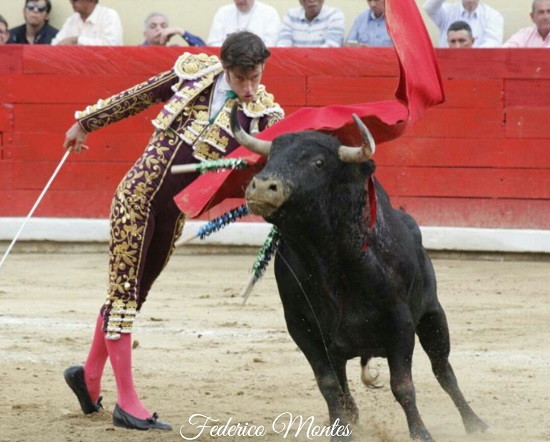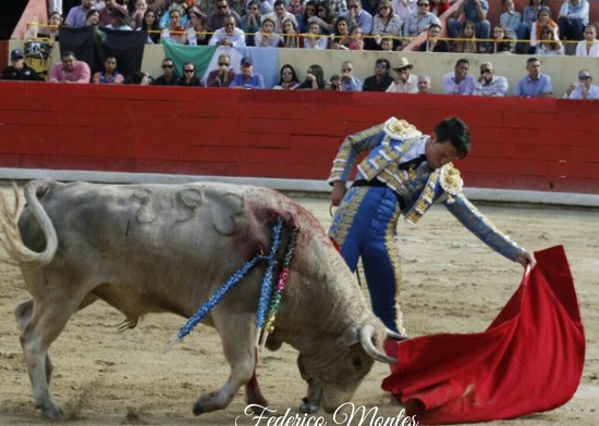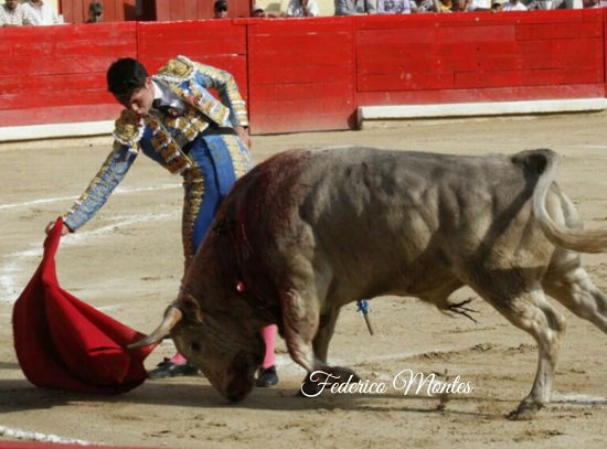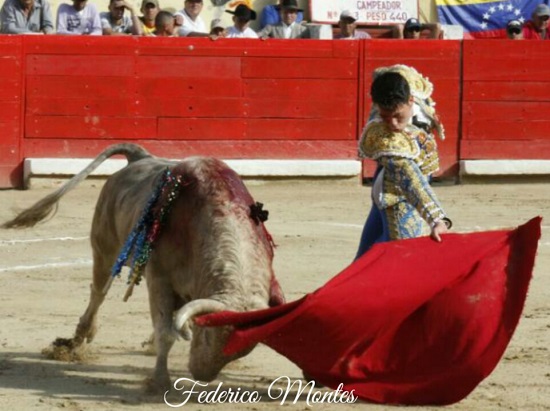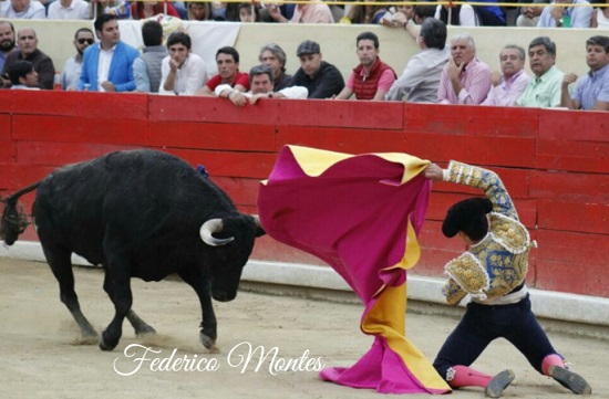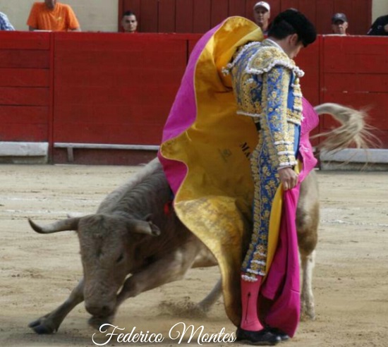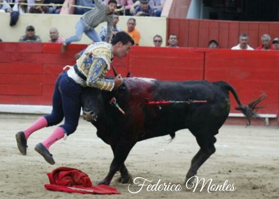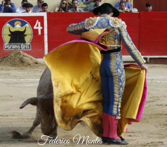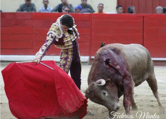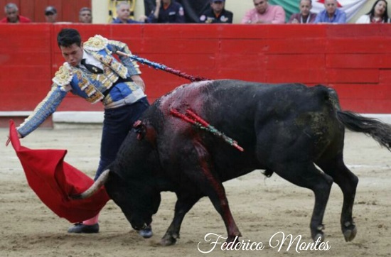 Vaya tarde complicada la que tuvo el venezolano Manolo Vanegas, de las tardes que se recuerden en esta plaza donde se haya pasado más miedo ante un toro como fue ese quinto de la función, un toro totalmente diferente en hechuras al resto de los lidiados, luciendo un raro manchón en el hierro. Cosas raras que solo en esta plaza pueden suceder. Con ello Vanegas apechugó desde salida a no irse de vacío de esta plaza, en larga cambiadas cerrado en tablas, para luego propinar fuerte castigo en varas, hasta tres puyazos a cargo de Nahir Zambrano, con tumbo incluido. En la muleta vendría el toma y daca, el recital de “testiculina” que hubo de echar pie Manolo al ver pasar cada vez más ceñidas una embestidas que constantemente le median terrenos y colocación, siempre pegando un “tornillazo” en el embroque, avisándole hasta en tres ocasiones, toreando por la diestra con una verdad poco vista en torero tan novel, cargando la suerte en cada muletazo, hasta echárselo a los lomos, de forma dramática, segundos eternos en las astas, quedando grogui en brazos de las asistencias. Mayor drama imposible. Repuesto del trance, volvería a la cara, para rematar labor de estocada entera, trasera y desprendida, para doblar y premiársele con una de las orejas más merecidas y caracas que se recuerden en esta plaza. La ovación en la vuelta al ruedo, atronadora por donde pasaba, hizo tras esta que pasara inmediatamente al hule, donde reventado, quedaría en manos de los galenos de plaza.