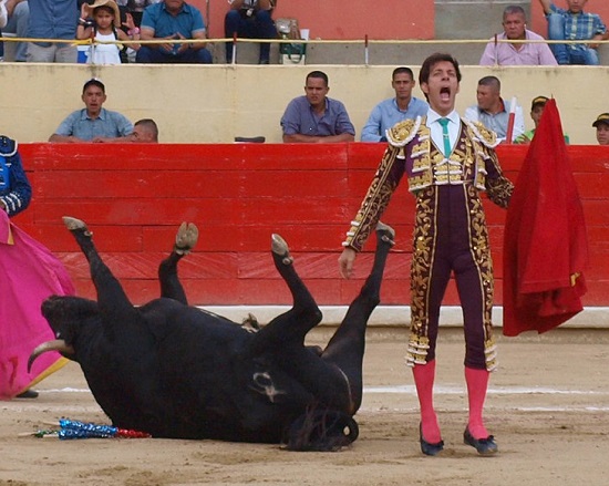 Pero lo cumbre vino con el nobilísimo y anovillado «Canelo» el cual le sangraron con minúsculo cuidado en varas, una maquinita de embestir, en especial por el lado derecho donde Nazaré se jactó de pasárselo templadamente, y con garbo, incluso abusando de cercanías, lo que hizo en una serie donde por espaldinas hizo explotar de júbilo la plaza. El toreo por naturales tuvo su miga, en series cortas y bien condimentadas con ese salero sevillano que tanto gusta, para epilogar por ajustadas bernardinas, antes de solicitar irresponsablemente el indulto del animal, cambiando hasta en tres ocasiones de espadas, vaya a saber con qué solapada intención. Lo cierto es que Usía mantuvo firme su criterio, yéndose tras la espada de certero volapié en todo lo alto para de los presentes solicita el par de orejas que certeramente se premió dichos trasteo y vuelta al ruedo al destacado astado.