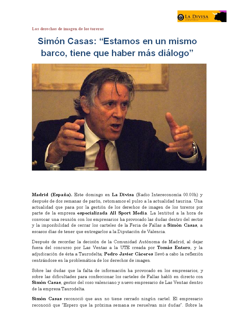 Simón Casas: Estamos en un mismo barco, tiene que haber más diálogo