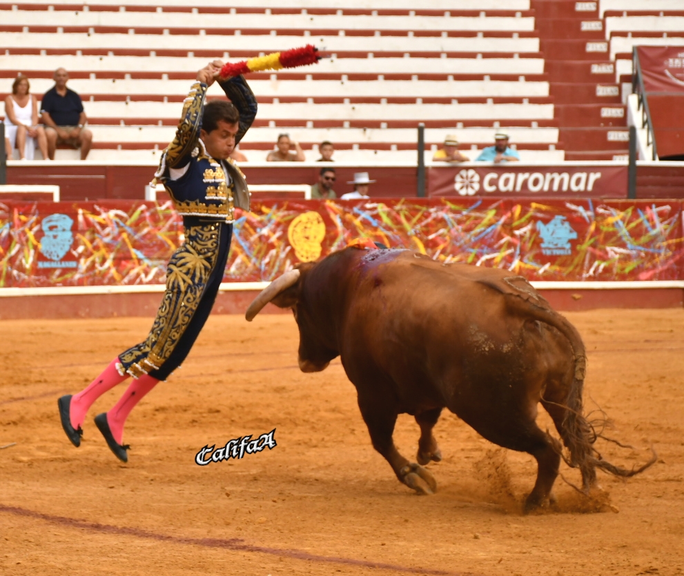 Germán vidal » El melli» ha estado superior en sus dos novillos un novillero cuajado que ha demostrado estar hecho,en su primero le corto una oreja y las 2 orejas a su segundo el más dificil del encierro demostrando su capacidad y mando ante las dificultades que le dio este segundo novillo. Una gran estocada le permitió un triunfo importante en su tierra.
