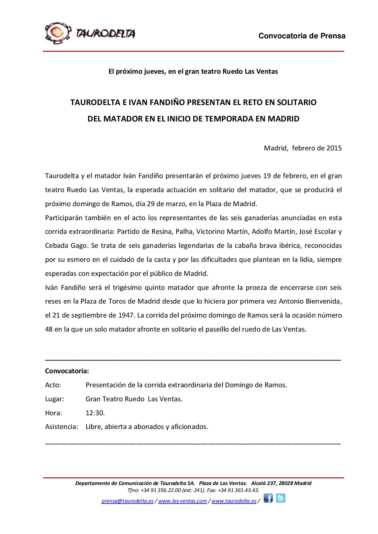 Taurodelta e Ivan Fandiño presentan el reto en solitario del Matador en el inicio de temporada en Madrid