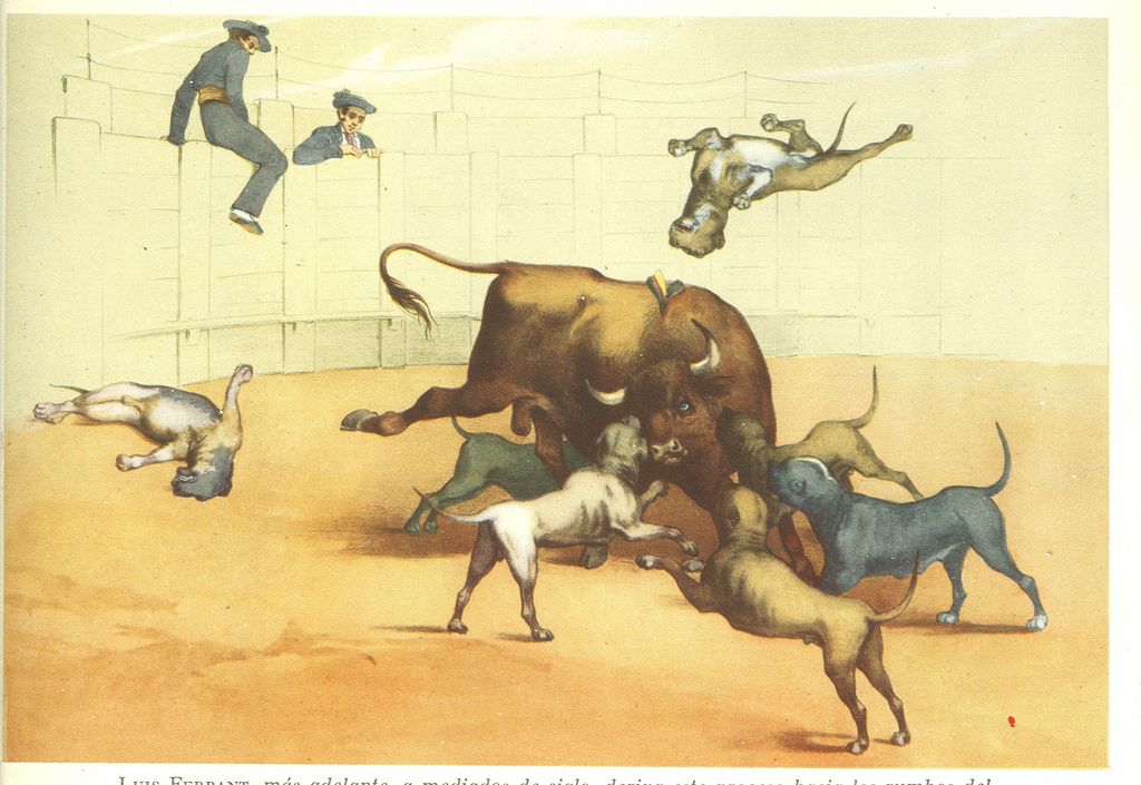 Echar perros al toro ha pasado a la historia, y sólo permanece su recuerdo en los dibujos de alguna lámina de la antigua