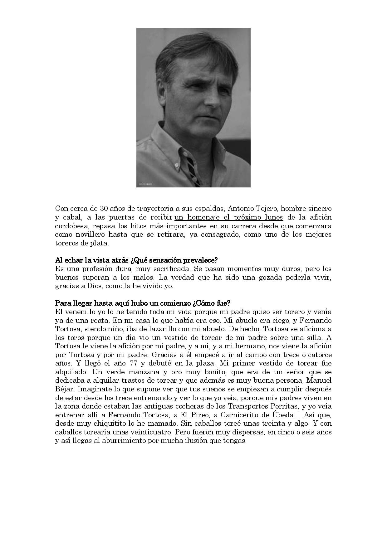 Tejero: `Cuando le dije a mi padre de cambiarme el carné, me pegó un arreón y me dijo: Si lo haces es para ser de los mejores´