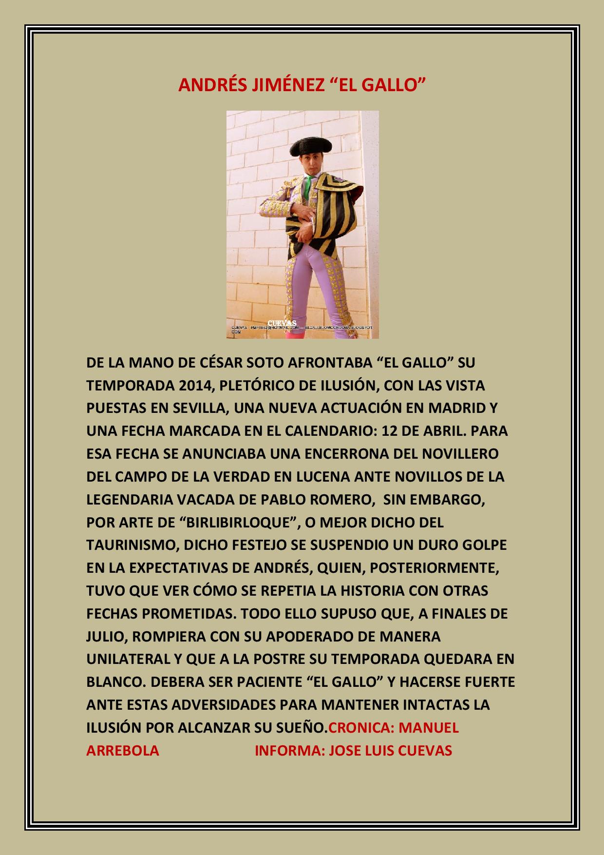 Temporada Andrés Jiménez `El Gallo´