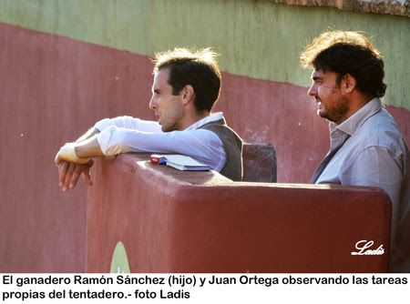 Vino a probarse y se demostró a sí mismo, y a los presentes, que está pletórico y en un momento de Gracia que le hace sentirse esperanzado en la tarde del día 12, donde, si un toro le mete la cara va a formar un taco de los gordos. Calidad y arte le sobran y de la muñeca ya está recuperado. No se resintió en absoluto y de la zurda surgieron tandas con una cadencia y temple propias de un gran maestro.Nos dio coraje que se acabara el tentadero. Tanto el ganadero Ramón Sánchez, como sus hijos (también ganaderos) Álvaro y Ramón estaban muy satisfechos y a la vez agradecidos de que Juan Ortega, con los lienzos de que dispuso, hubiera creado unas obras de arte tan sensacionales.