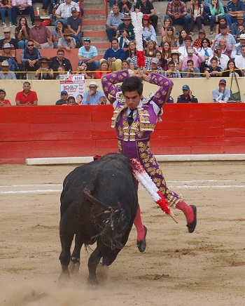 César Valencia por su parte saldría a la plaza con la polvora de la emoción desde el minuto 1 de su labor. El saludo a porta gayola fue clara demostración de intenciones para luego castigársele en su mínima expresión al ejemplar, ni para una muestra de sangre, cuidándole las limitadas fuerzas. El tercio de banderillas fue más emoción que ortodoxia, en especial el recordado par de la silla de su recordado tío Bernardo, levantando las ovaciones de los presentes. Por alto basó inicio muleteril, siempre buscando la conexión al tendido en repertorio variado, sobre todo por la mano diestra, llevándole por momentos con el temple y mando que quisiéramos verle más seguido a este joven valor de la torería nacional. El feo espadazo pescuecero, tras resbalarse en la cara del toro al momento de hacer “la cruz”, hizo que la vuelta al ruedo premiada fuera merecido reconocimiento.