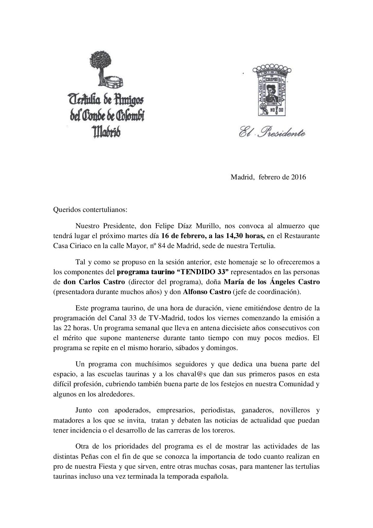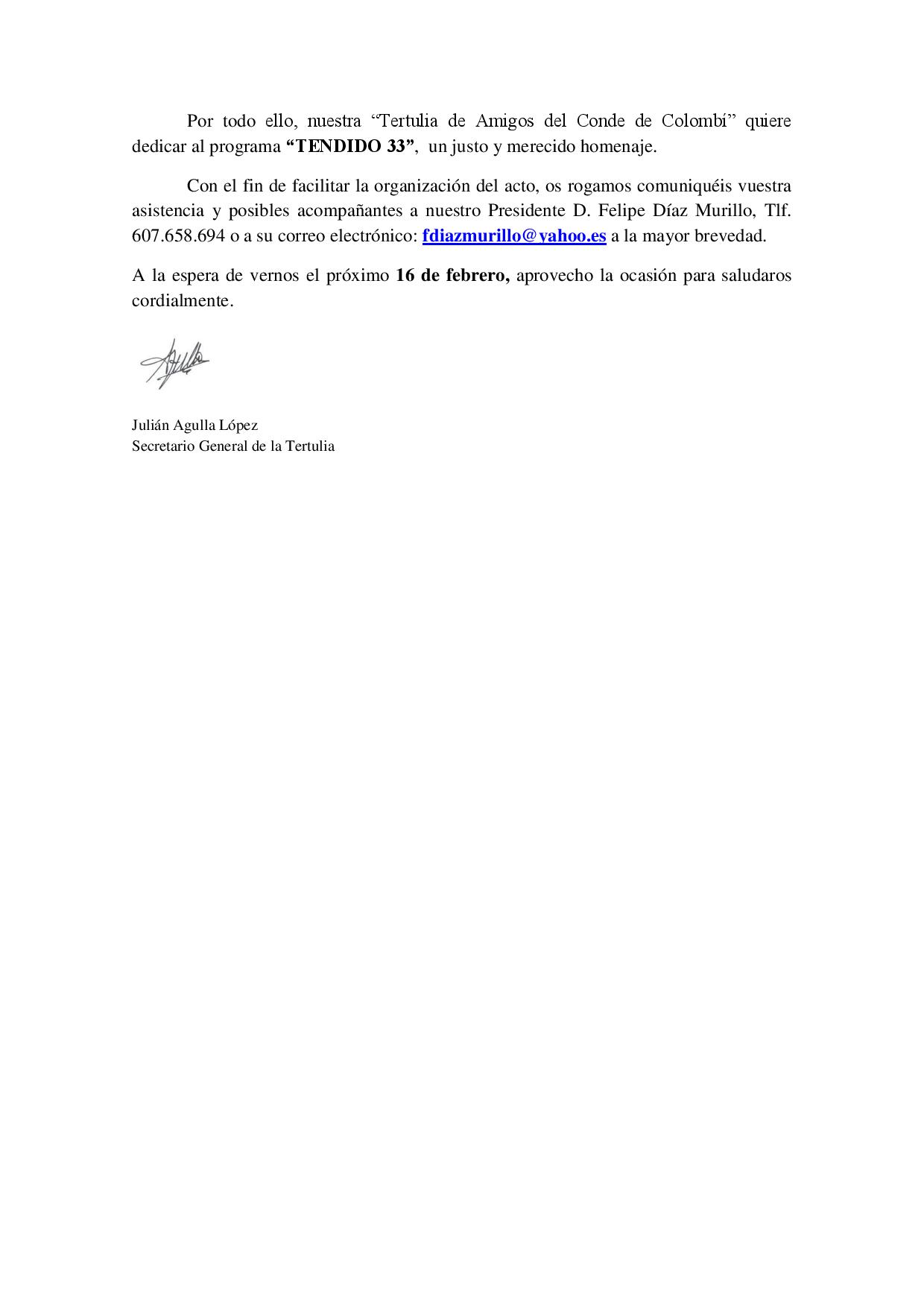 Tertulia de Amigos del Conde de Colombí rendirá homenaje a los componentes del programa taurino TENDIDO 33