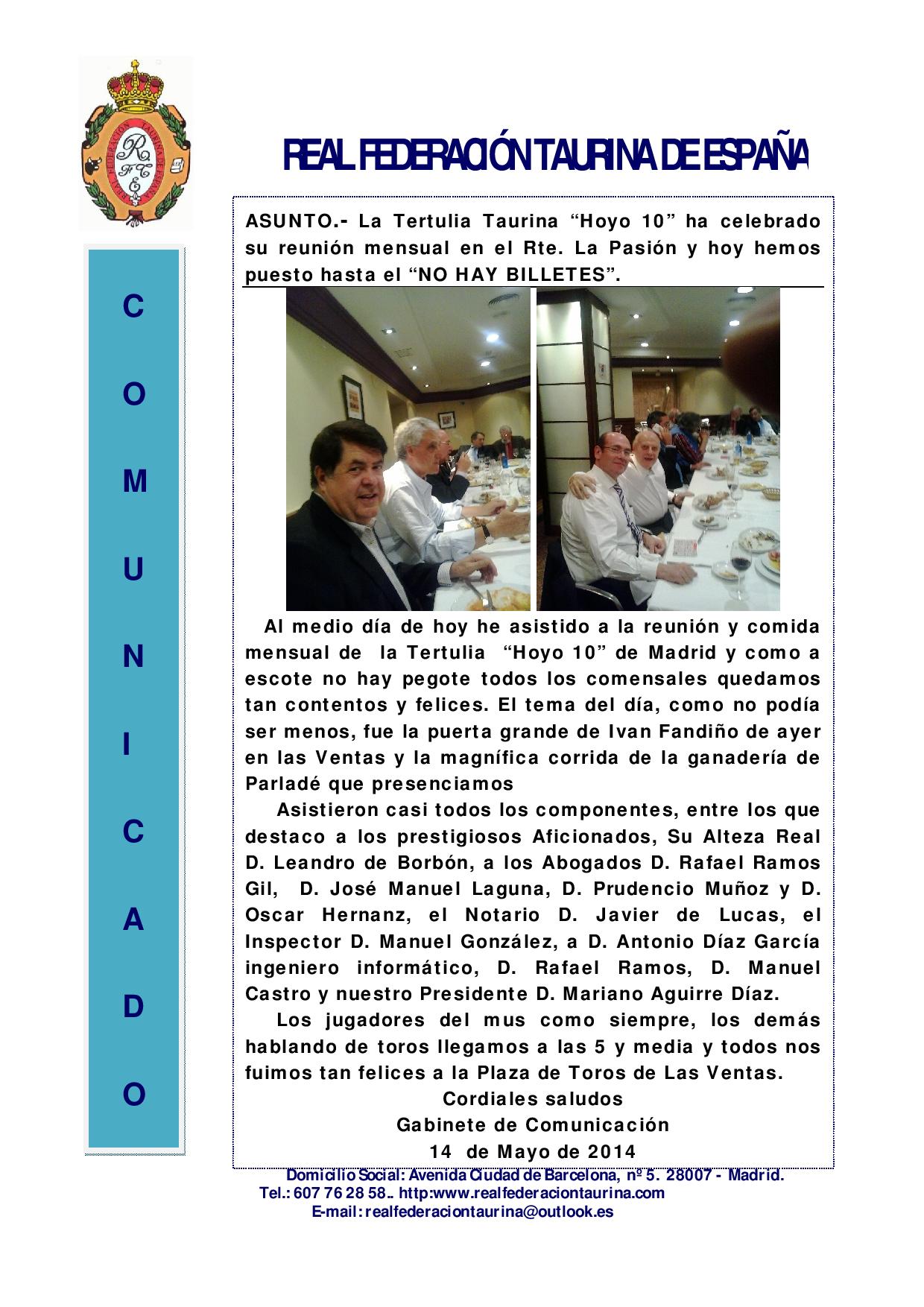 Tertulia Taurina “Hoyo 10” celebra su reunión mensual