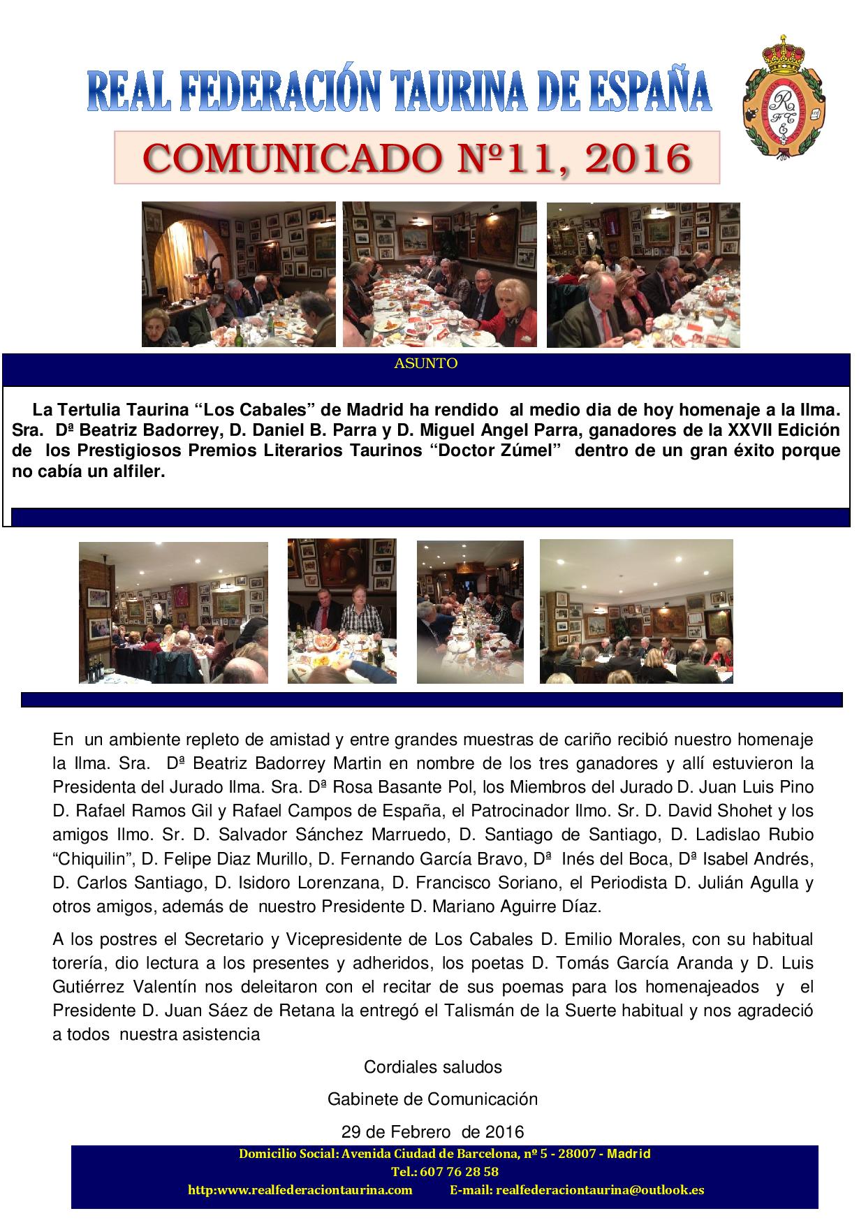 Tertulia Taurina `Los Cabales´ rindió homenaje a los ganadores de la XXVII Edición de los Prestigiosos Premios Literarios Taurinos `Doctor Zúmel´