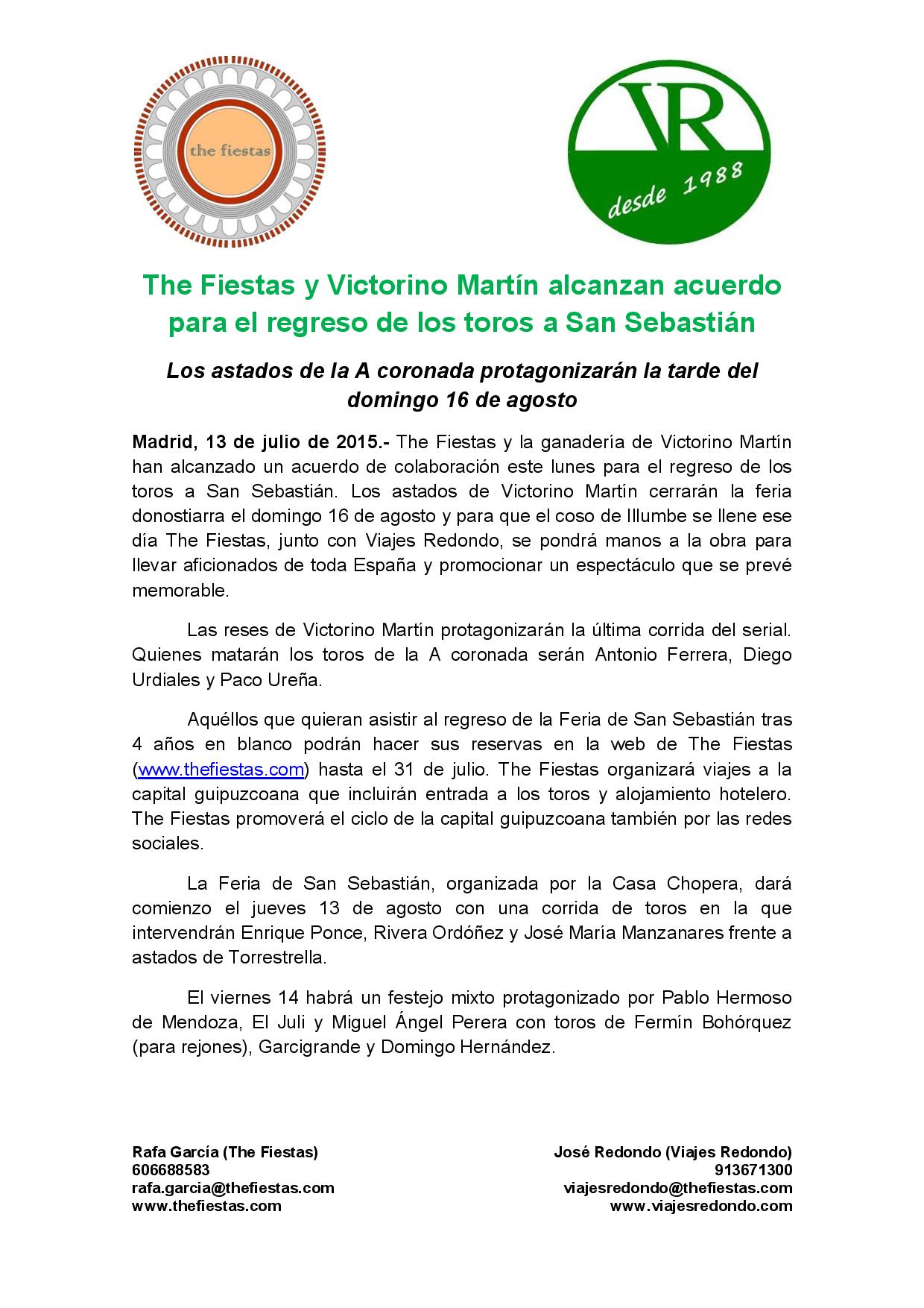 The Fiestas y Victorino Martín alcanzan acuerdo para el regreso de los toros a San Sebastián