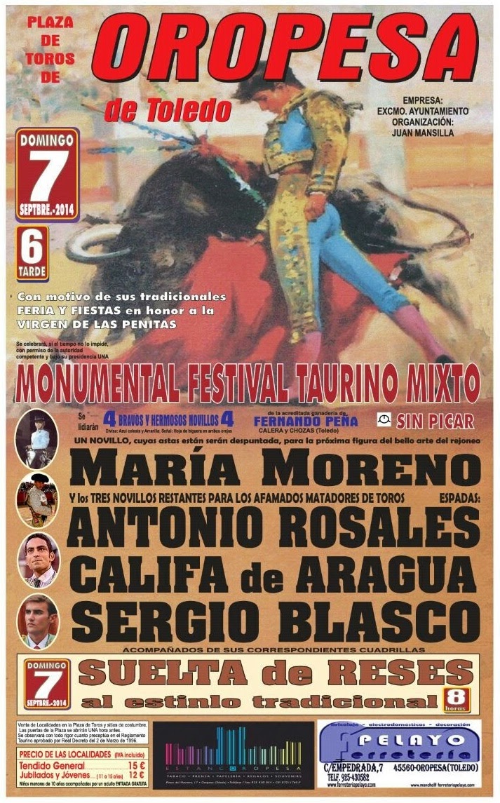 El matador venezolano Ramis Hassan «El Califa de Aragua», vuelve a España para actuar en el tradicional festival taurino de la histórica y monumental ciudad toledana de Oropesa, y que tendrá lugar el próximo domingo 7 de septiembre en honor de la Virgen de las Penitas, patrona de la ciudad, lidiándose reses del prestigioso hierro de Fernando Peña, alternando con la bella rejoneadora María Moreno, y los espadas Antonio Rosales y Sergio Blasco.
