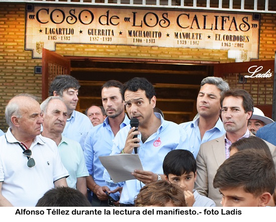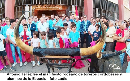 En el acto tomó la palabra el presidente del Círculo Taurino y de la Escuela, Alfonso Téllez, que leyó un manifiesto.