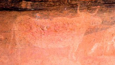 La escena es de gran naturalidad, formada por grandes toros y un caballo que desde ambos extremos dirigen su mirada hacia el centro de la escena. En el centro hay un grupo de toros , que se encuentran pastando , mientras que unos arqueros apuntan a un toro que se prepara para embestir.