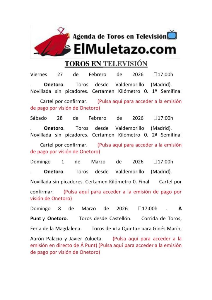 Toros en Televisión – Para + info haz clic👆 🇪🇸